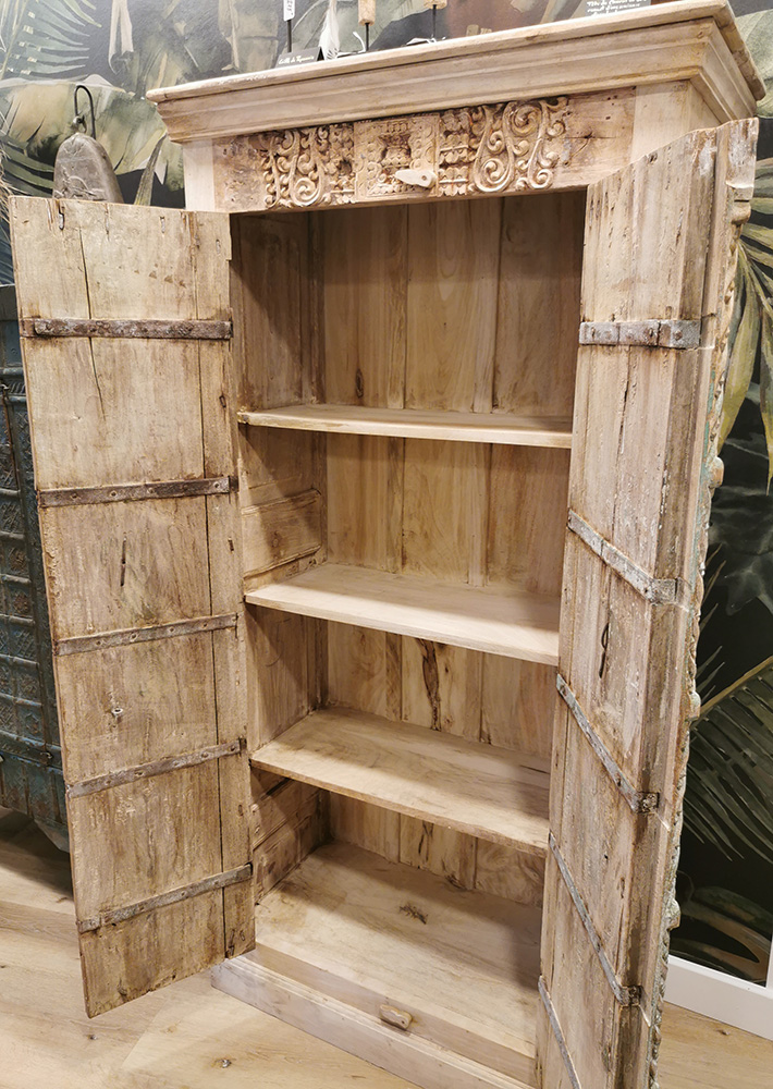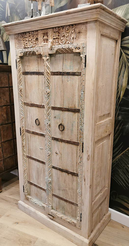 Constituée d’anciens volets en teck massif provenant d’Haveli (petit palais ou maison de maître indienne) sur une structure en bois de sheesham (bois de rose).