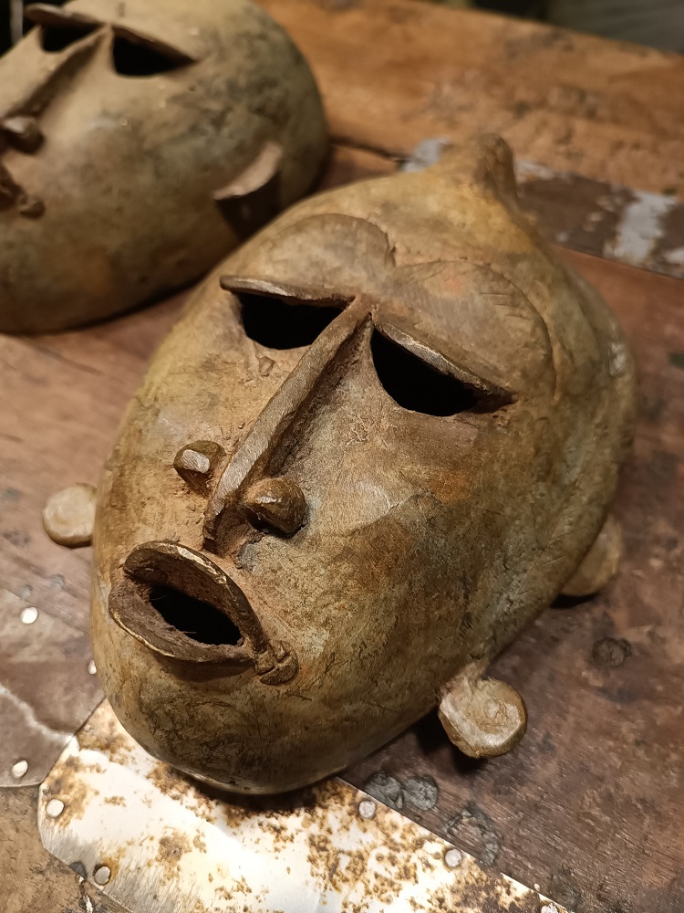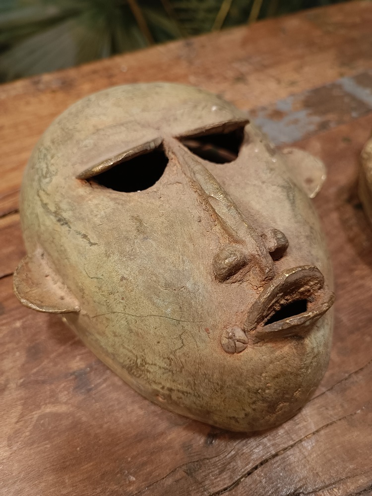 Très beau petit masque Dogon en Bronze oxydé représentant un homme ou une femme.