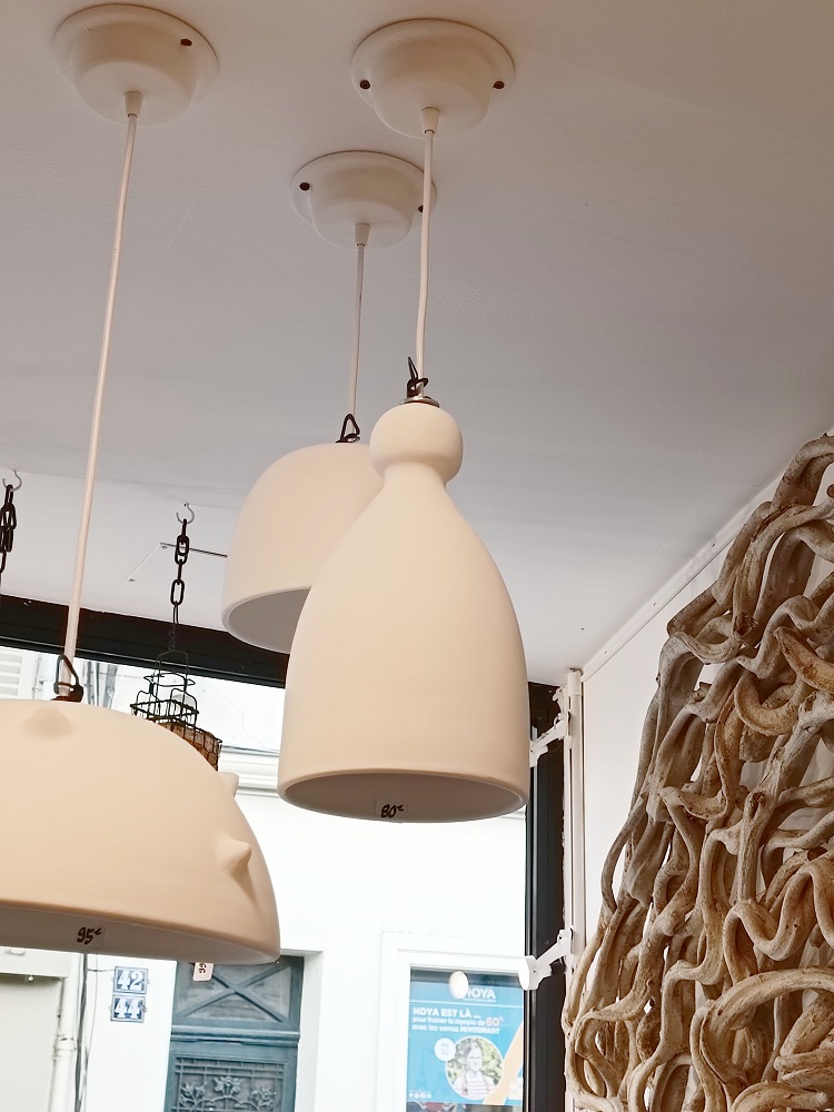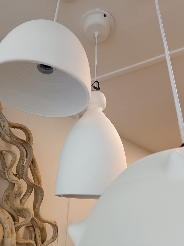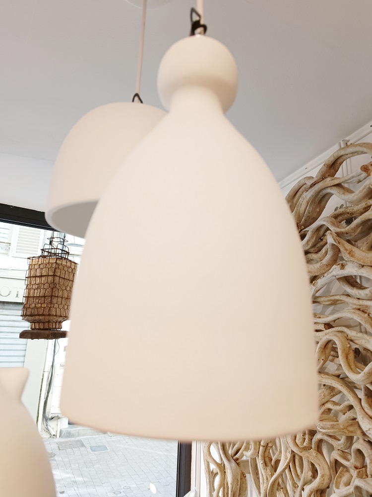Très jolie suspension en céramique blanche de style Bohème Chic.